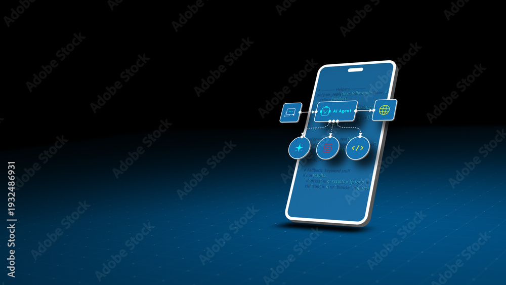 AI agent automation workflow on smartphone screen with digital interface for artificial intelligence apps #1932486931