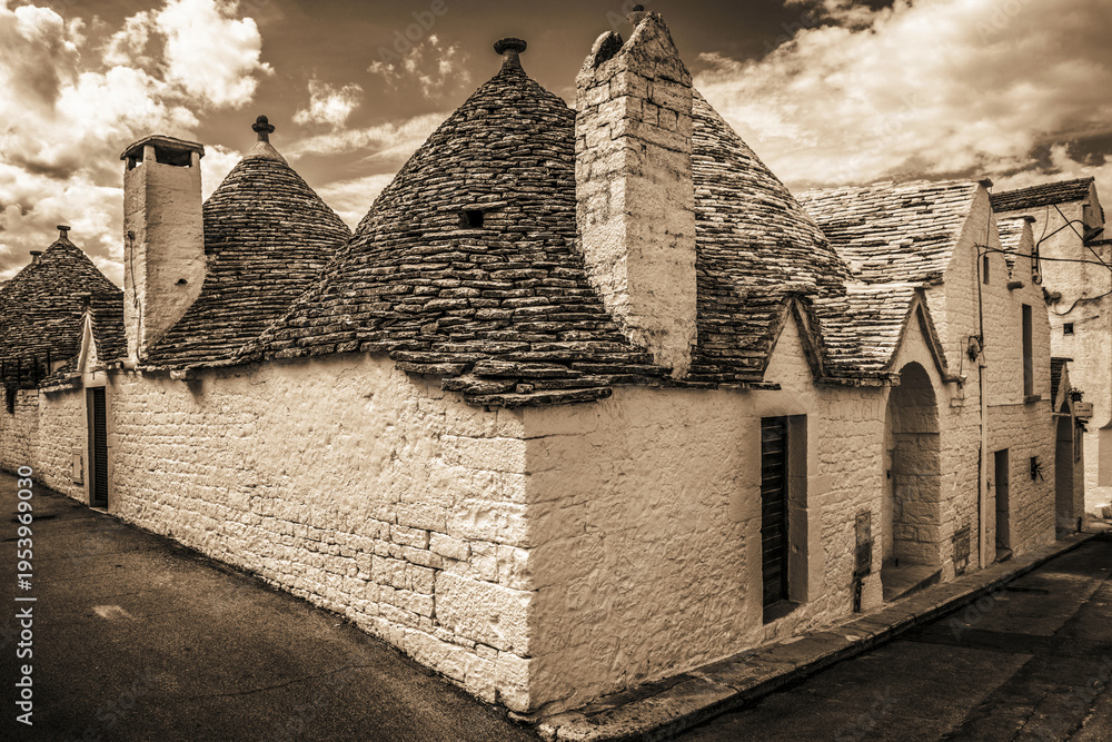 Alberobello est une petite ville des Pouilles, dans le sud de l'Italie, célèbre pour ses trullis. #1953969030