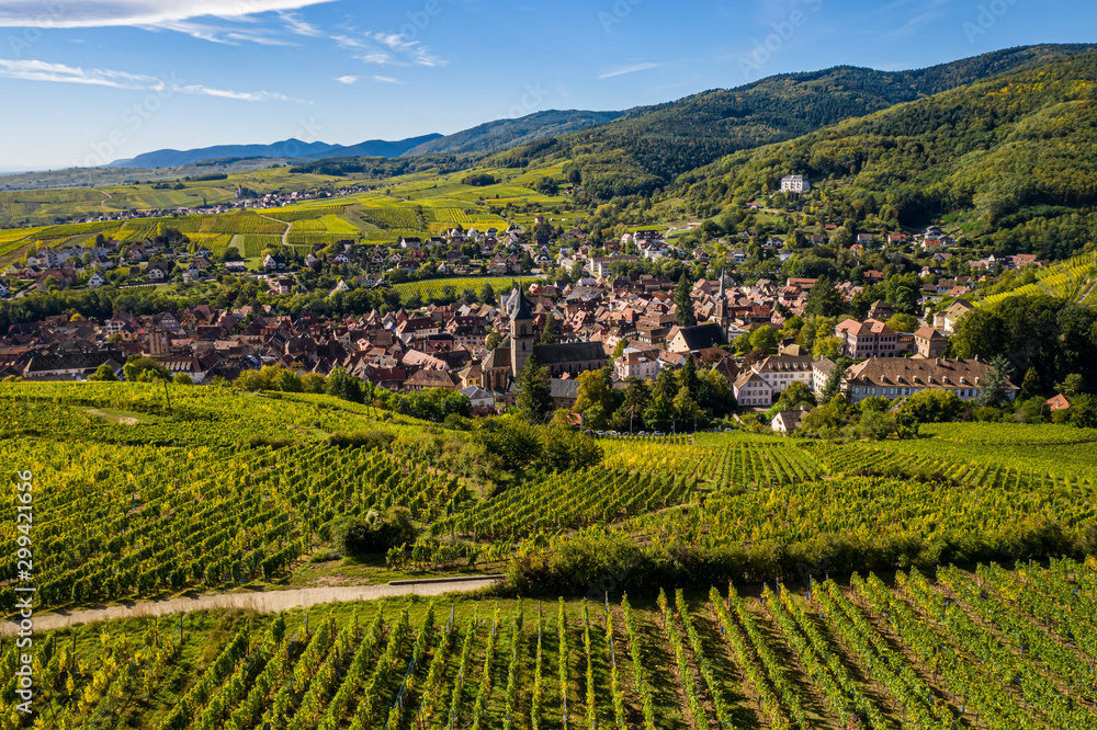 An aerial panorama of Ribeauvillé (France) with vineyards #299421656