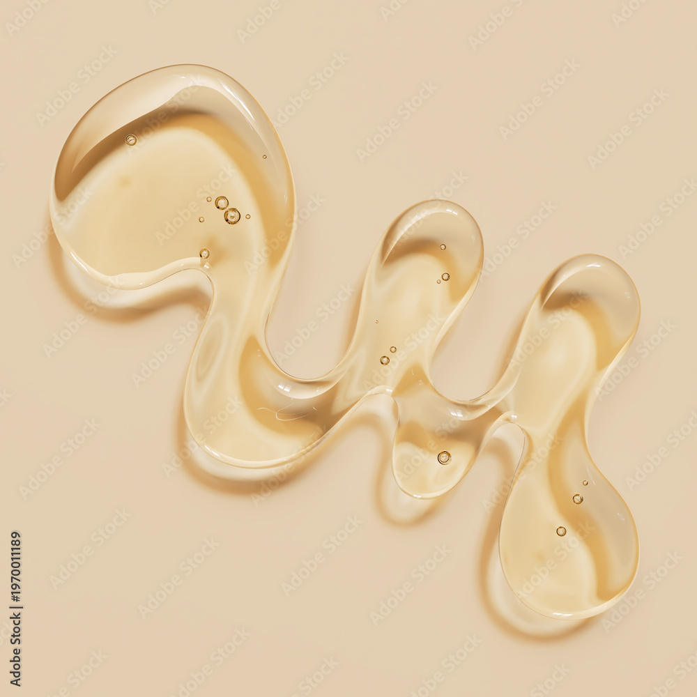 Artistic transparent cosmetic liquid gel wave with bubbles isolated on beige background 3d rendering suitable for skin care face serum or essence advertising layout artwork #1970011189