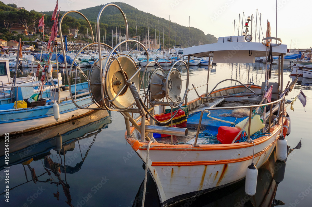 Bateaux de pêche à quai dans le port de la Madrague à Saint Cyr sur Mer #1951541335