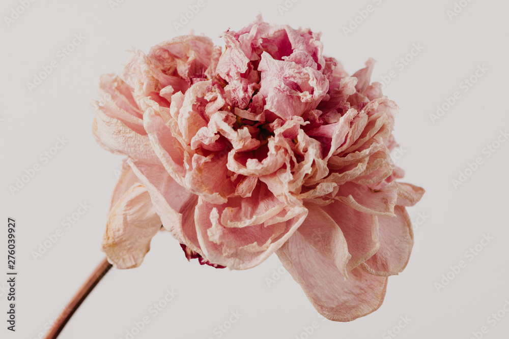 Beautiful wilted pink peony on white background. Studio shot #276039927