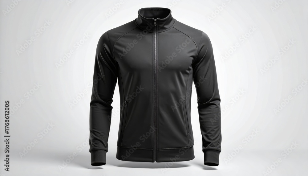 Black Athletic Jacket with Zipper on Grey Background with Studio Lighting #1768612005