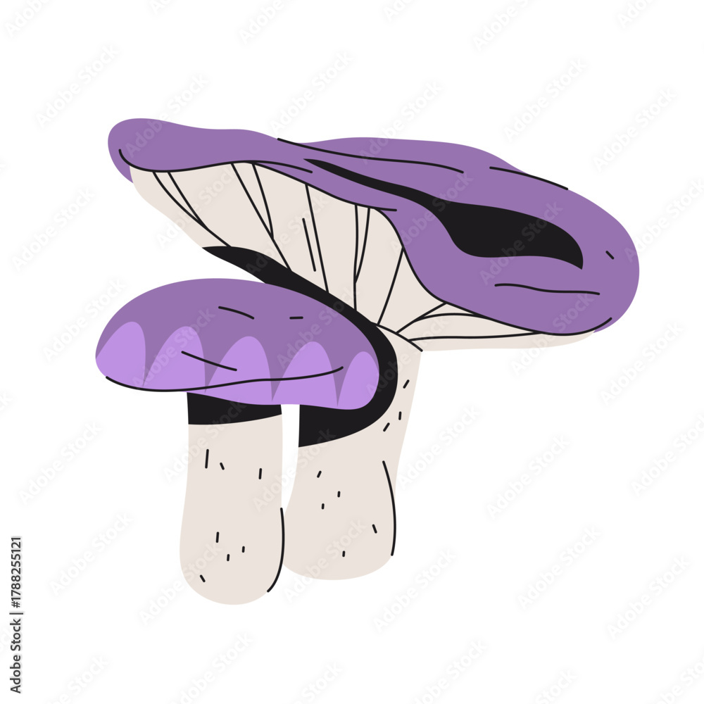 Blewit mushroom or blue leg fungi. Vector natural forest flora with stem and cap. Fungus macro. Autumn organic edible fungus. Ecology and mycology element. Wildlife field species. Nature and botany. #1788255121