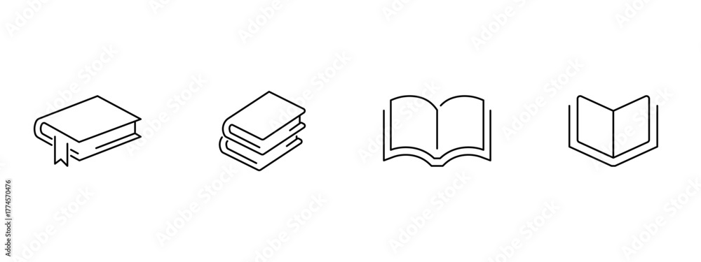 Book icon set. Minimalist line vector illustrations of closed and open books. Education symbol. Vector illustration. #1774570476