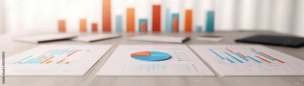 Business analysis with graphs, charts, and data reports on a table, showcasing financial trends and performance insights. #1013760551