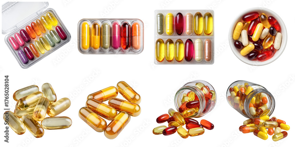 Capsule pill png set collection in 3d transparent no background in medical and supplement concept. #1765028104