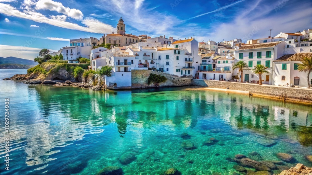 Charming coastal town in Spain known for its white-washed buildings and crystal-clear waters, Cadaques, Catalonia #1029724982