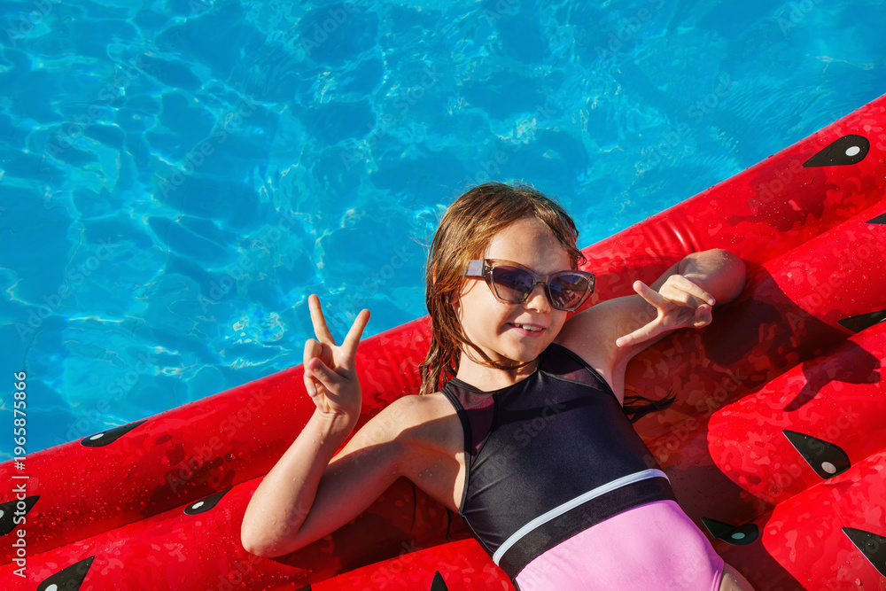 Child in swimming pool. Having fun on vacation at the hotel pool. Colorful vacation concept. #1965875866