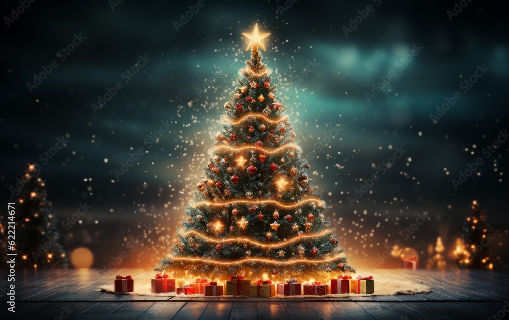 christmas tree with lights and presents. #622214671