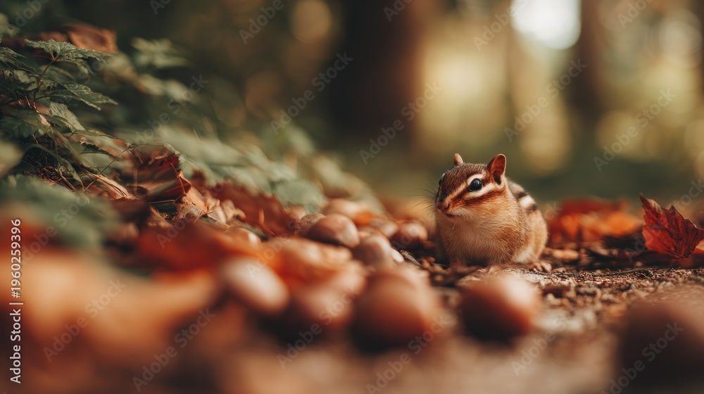Close up of a chipmunk foraging for food in a natural outdoor environment #1960259396