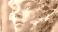 Close-up of a white, sculpted female face with an eroded, textured surface. #1699052148