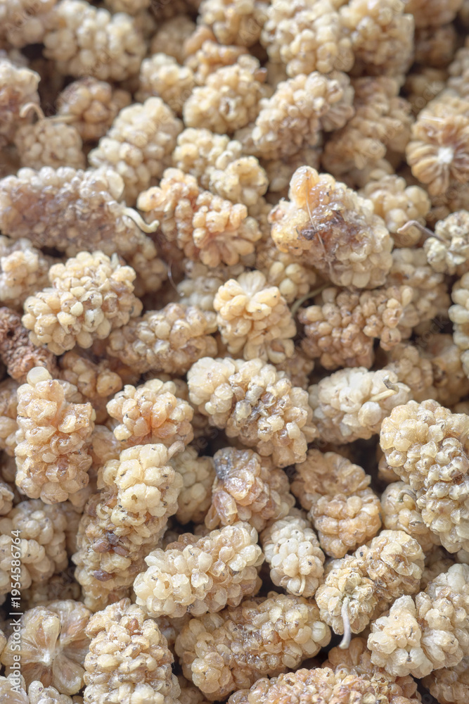 Close up photo of dried white mulberry, selective focus. #1954586764