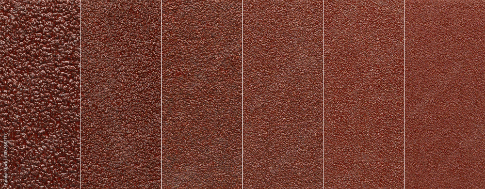 Collection of sandpaper textures showing different grit sizes from coarse to fine. #1952667717