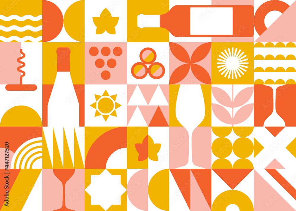 Concept banner in geometric style with wine elements. Vector background for wine tasting, festival, branding, etc. #447127520