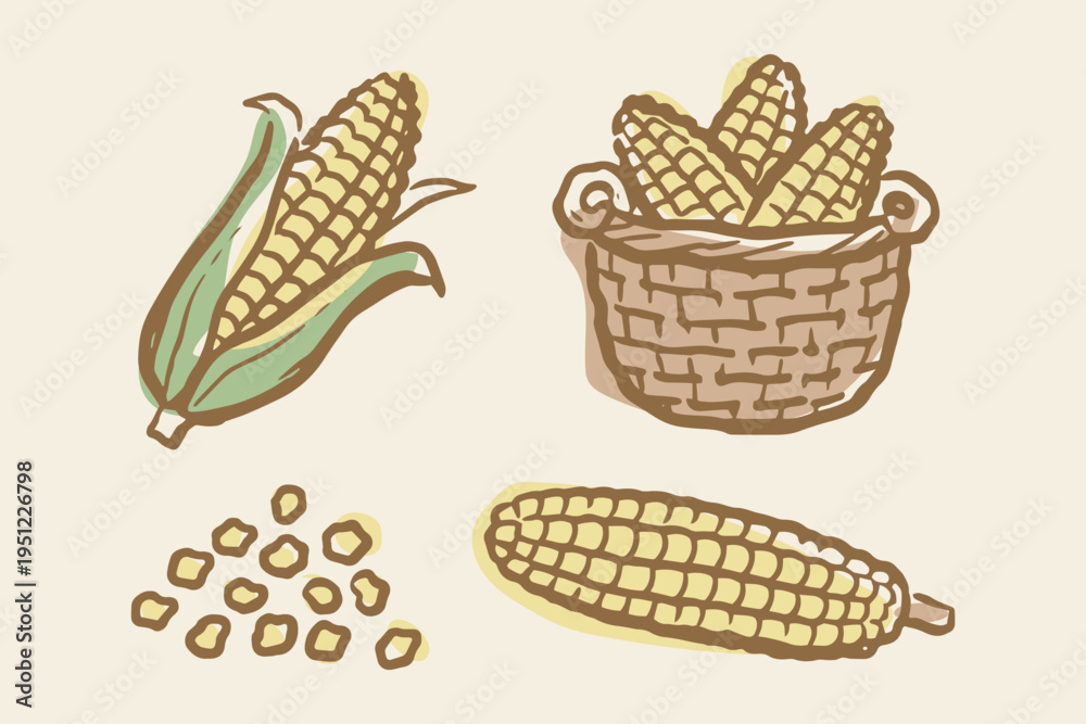 Corn elements set outline sketch vector illustration #1951226798