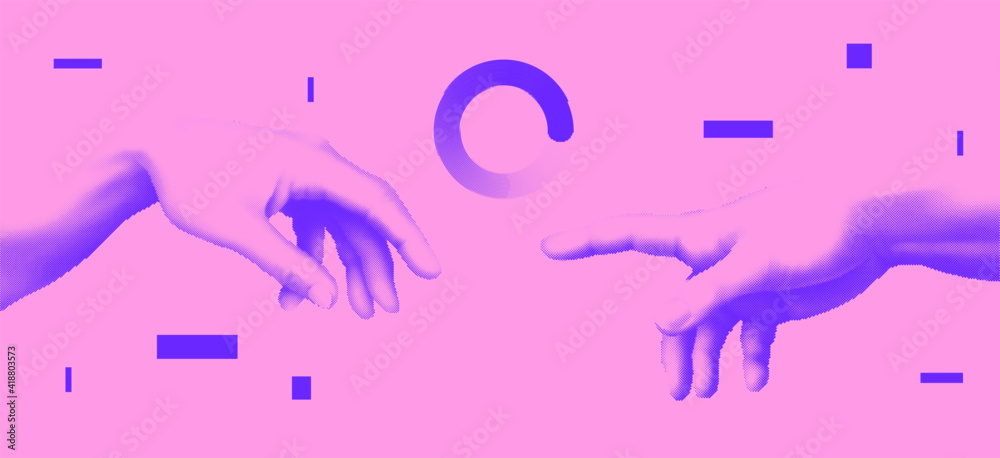 Creation of Adam. Contemporary art collage. Vaporwave style poster concept. #418803573