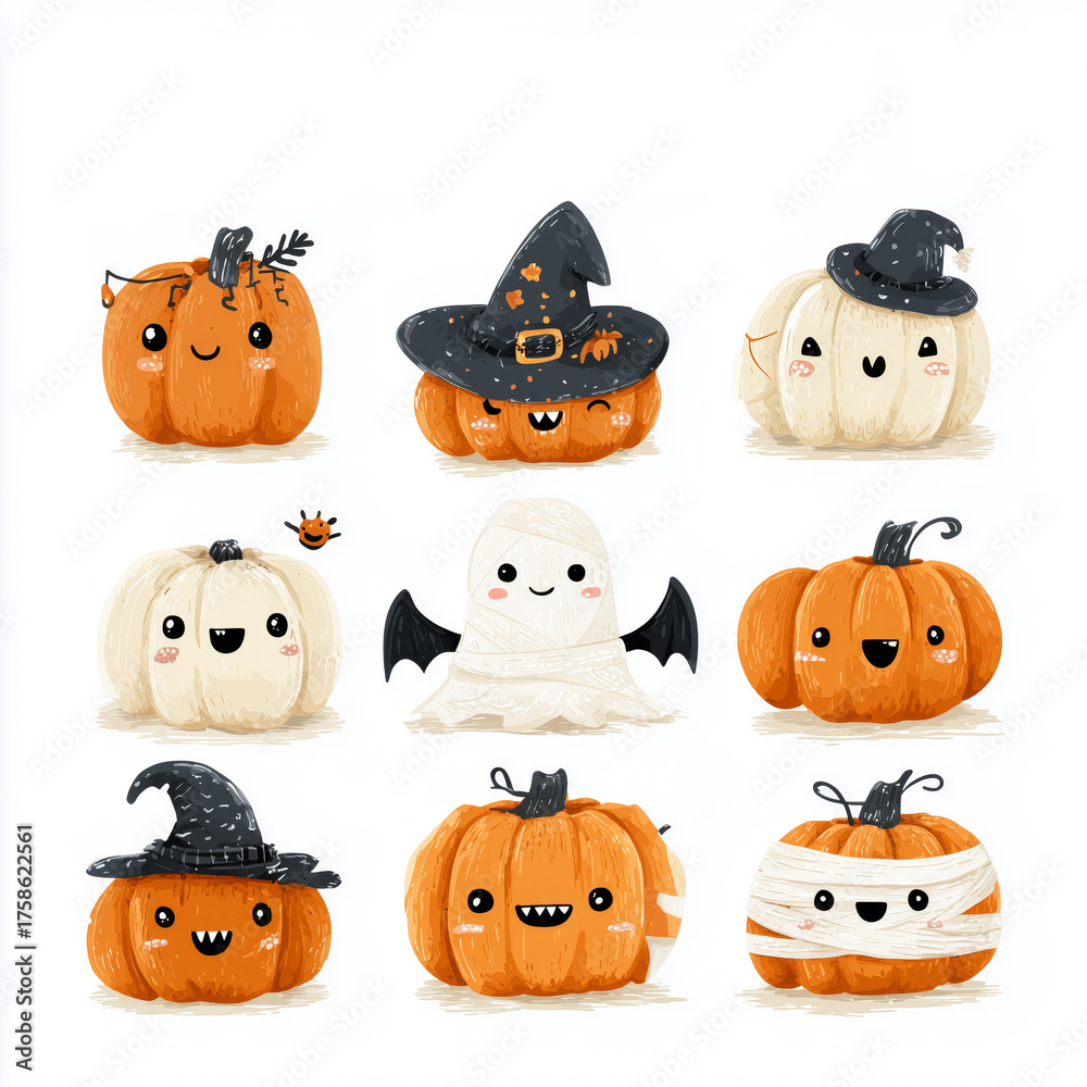 Creative cartoon pumpkins and ghost characters for Halloween celebration art design #1758622561