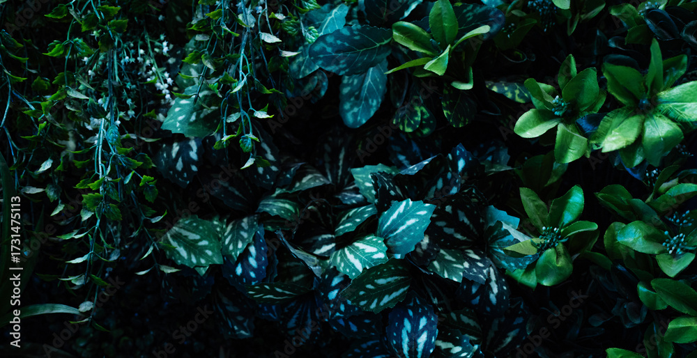 Creative nature green background, tropical leaf banner or floral jungle pattern concept. #1731475113