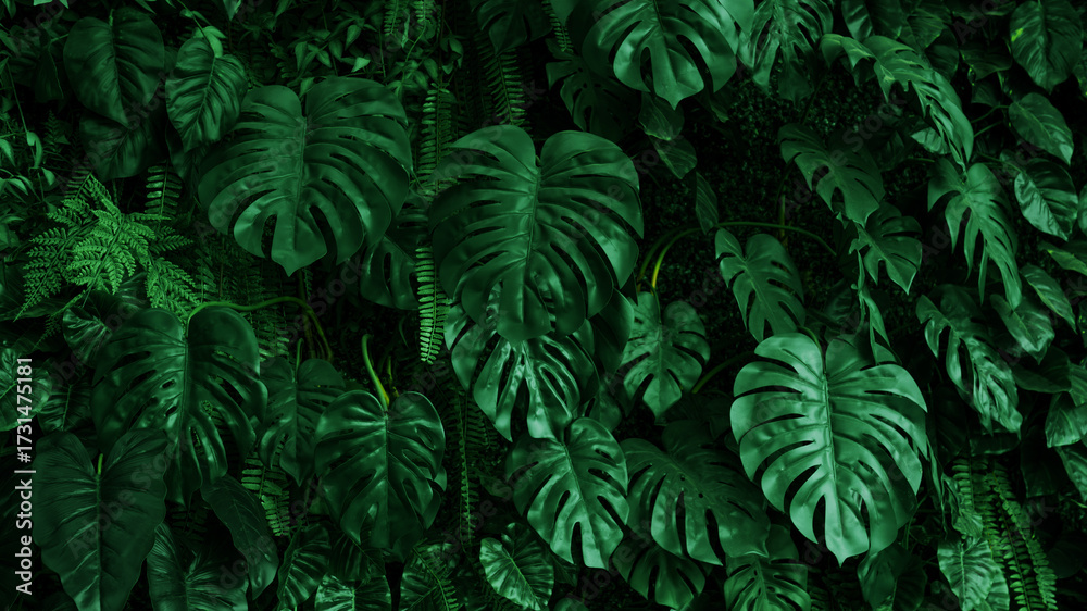 Creative nature green background, tropical leaf banner or floral jungle pattern concept. #1731475181