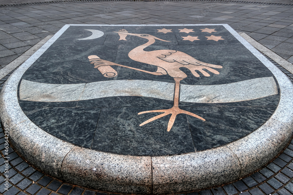 Croatia - The coat of arms of the town of Slavonski Brod placed on a pavement #463642959