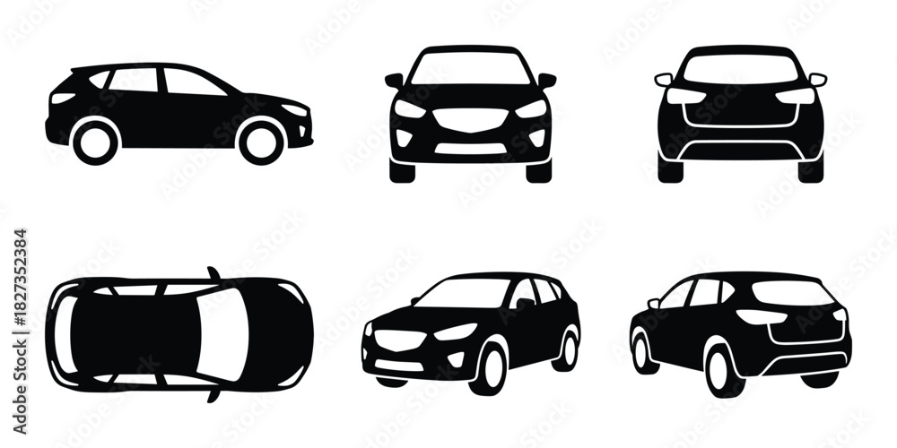 Crossover car side, front, back, top, angled views, suv auto transport for family, isolated. #1827352384