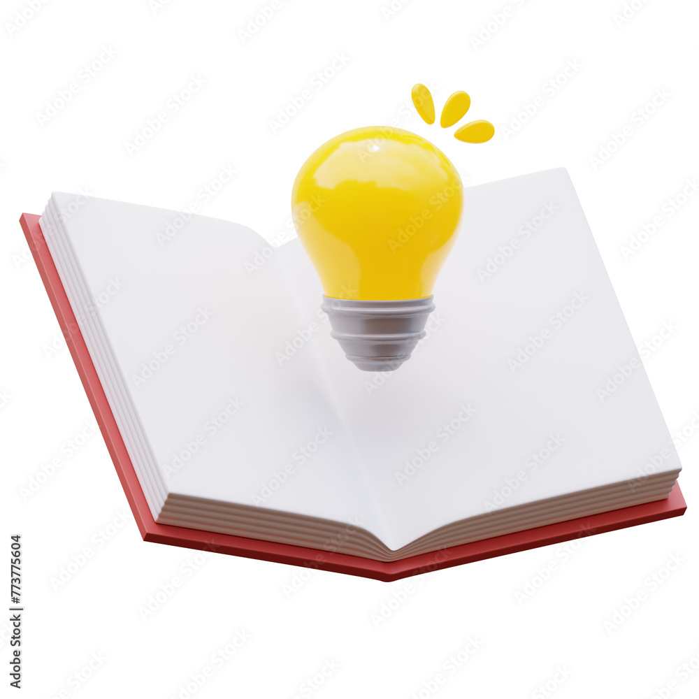 3d Open book with shining bulb. Book and light bulb isolated png. Back to school icon. education 3d icons. #773775604