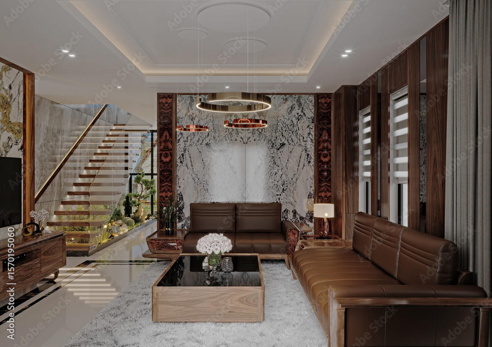 3d render luxury apartment living and dining room #1570195060