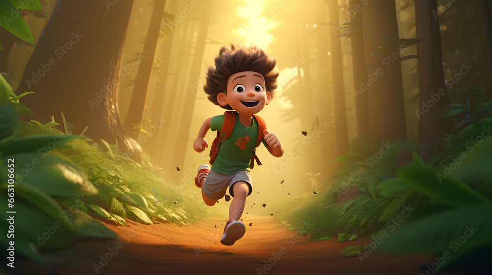 3D Render of a Joyful Kid in Green T-Shirt - Generative AI #663106652
