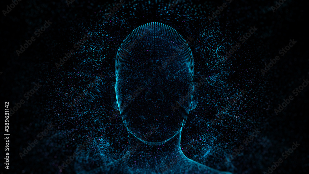 3d render of abstract face in digital cyberspace with a lot of particles around. Technology concept of facial recognition. #389631142