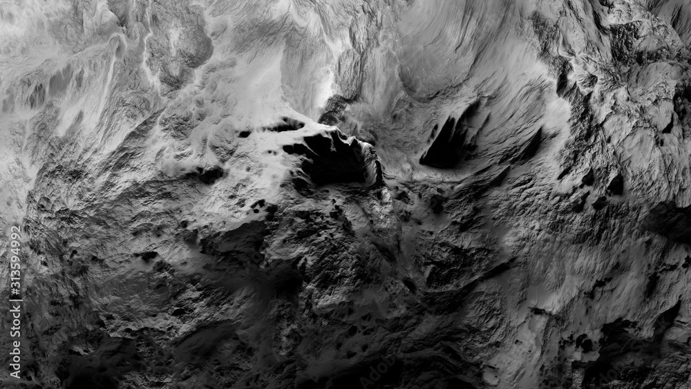 3d render of detailed displaced surface. Abstract planet surface. Noise texture. #313594992