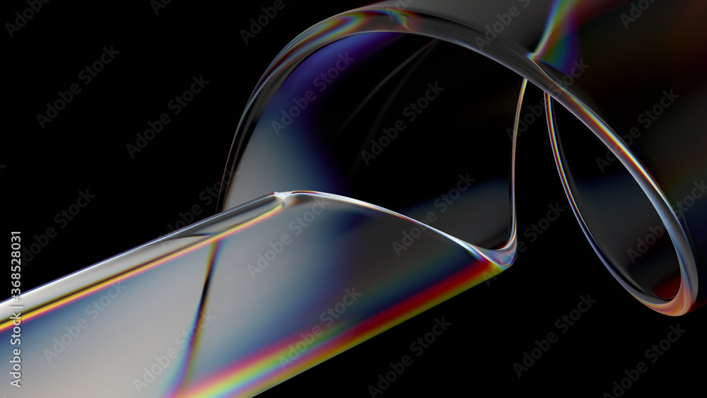 3d render of glass object with dispersion and iridescent effects. Realisitc light splitting. Luxury and modern background. #368528031