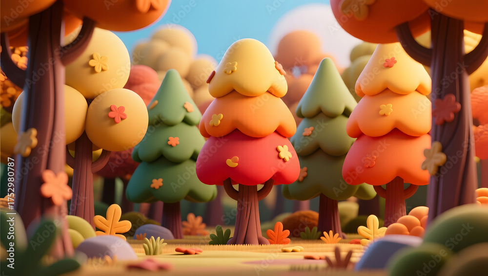 3D Themed Illustration of a Fantasy Forest Journey #1752980787