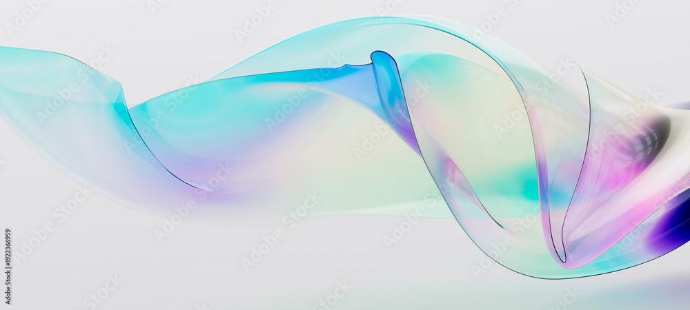 Delicate abstract 3d rendering of a thin film flowing fabric. Elegant wave featuring subtle pastel holographic color gradient. Cosmetic, beauty care, medical innovation background #1922366959