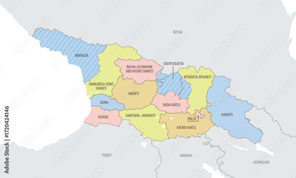 Detailed map of Georgia with administrative divisions and borders of neighboring countries, vector illustration on white background #1720424146