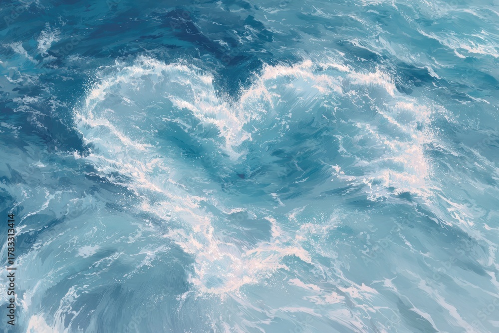digital painting of ocean waves forming heart shape, clean minimal eco love for nature concept, pastel blue #1783313414