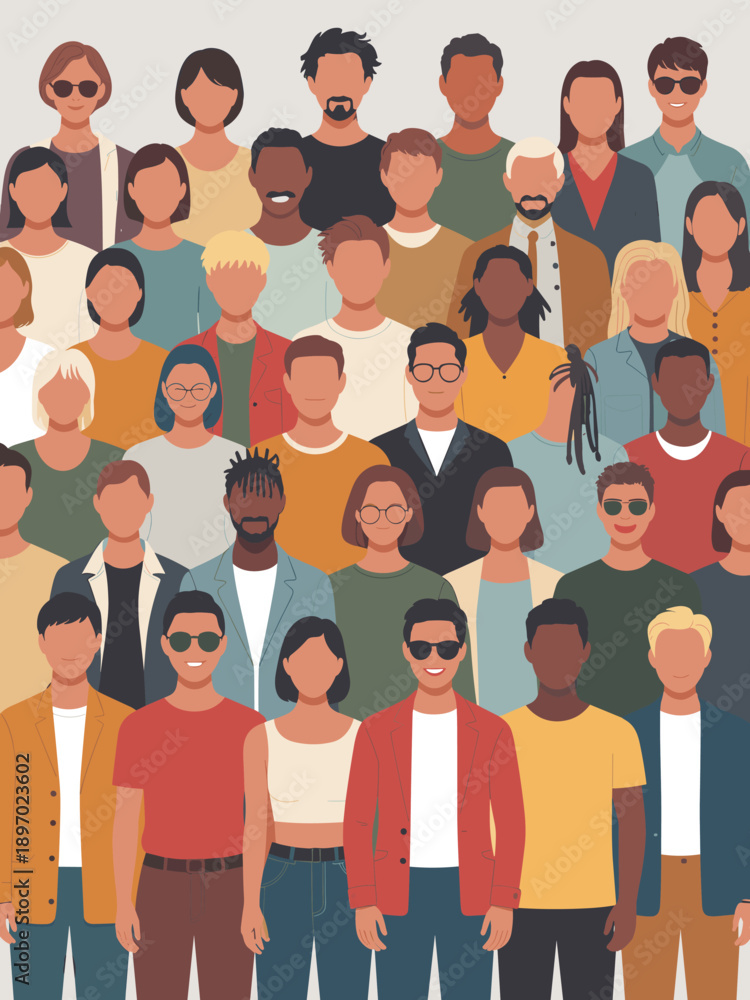 Diverse group of people standing together demonstrating unity and community support in modern workplace corporate environment crowd of multiethnic men and women representing teamwork collaboration and #1897023602