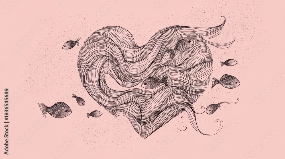 Drawing of a heart with fish inside #1936545689