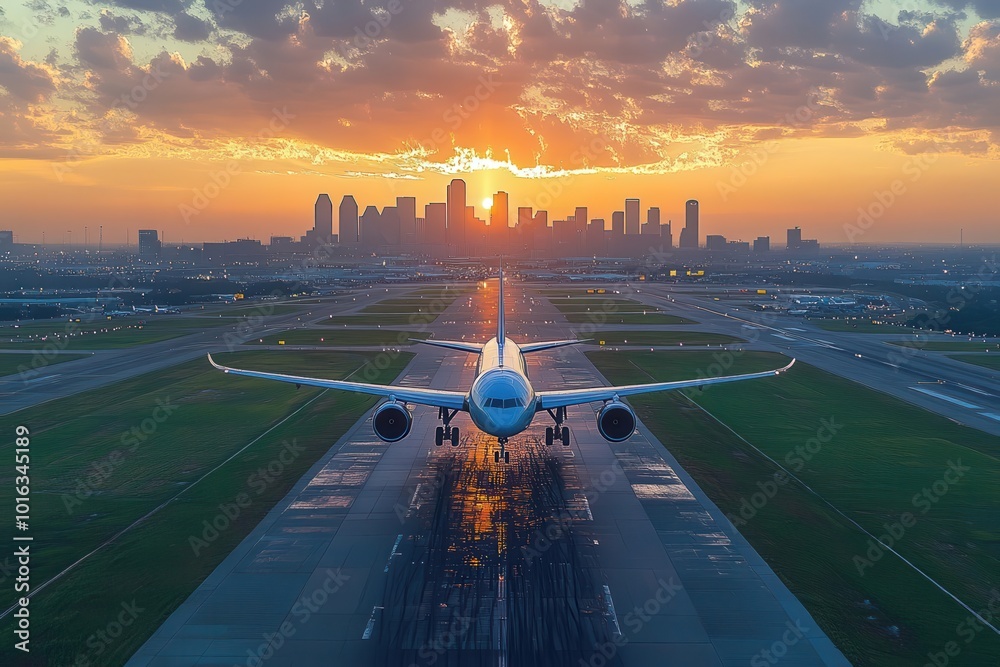 drone view of dallas fort worth airport with planes taking off and landing surrounded by a bustling city skyline capturing the essence of travel and modern infrastructure in a vibrant alive setting #1016345189