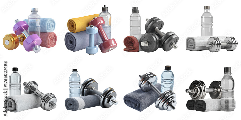Dumbbell and towell png isolated object collection background for gym and workout purpose. #1765027493