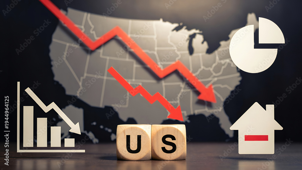 Economic downturn in the US illustrated with charts and a map. #1944964125