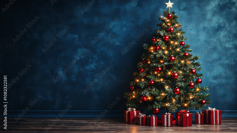 Elegant Christmas Tree with White Lights and Red Ornaments. Generative AI #1082322581