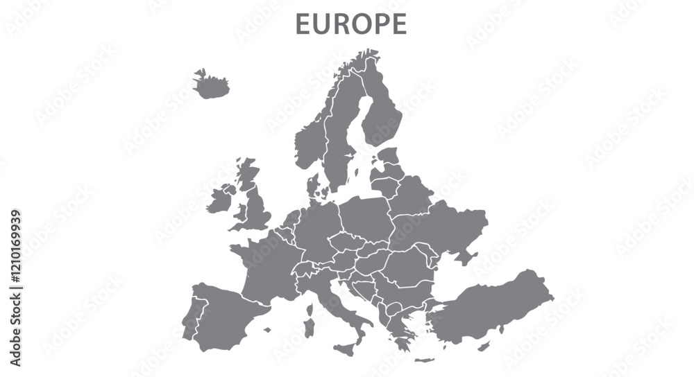 • #1210169939 Europe with countries Map grey