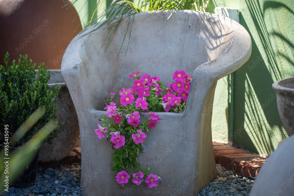 Fleurs dans un fauteuil en pierre #1955415095