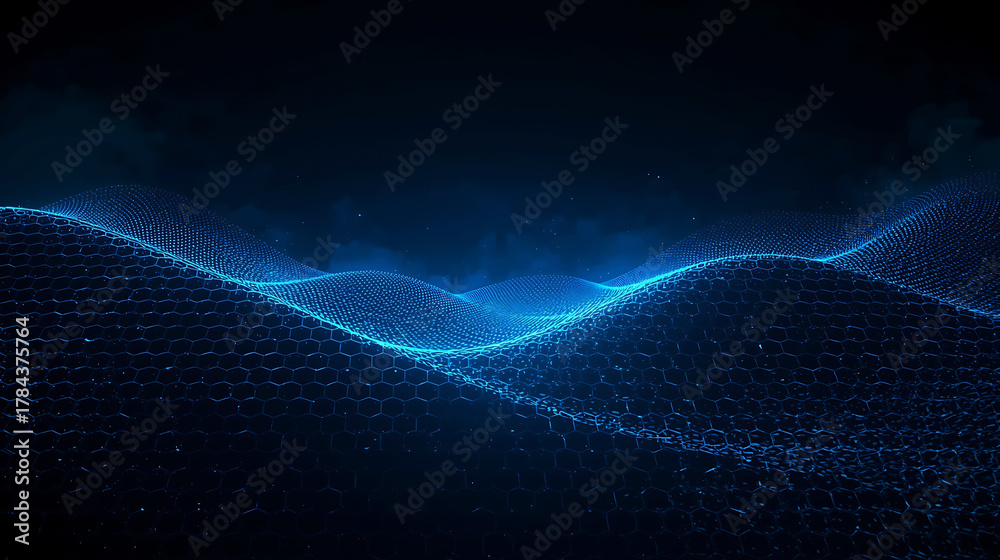 Futuristic Blue Digital Landscape with Hexagonal Mesh for Technology Backgrounds and Creative Design Projects #1784375764