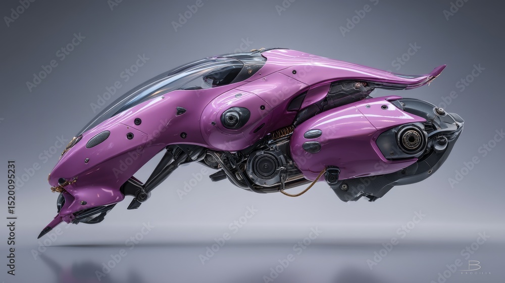 Futuristic pink hovercraft showcasing advanced technology and sleek design. #1520095231