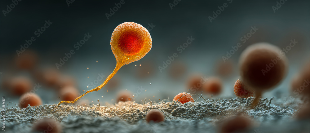 germinating clostridium perfringens endospore in macro 3d microscopic illustration #1945896354