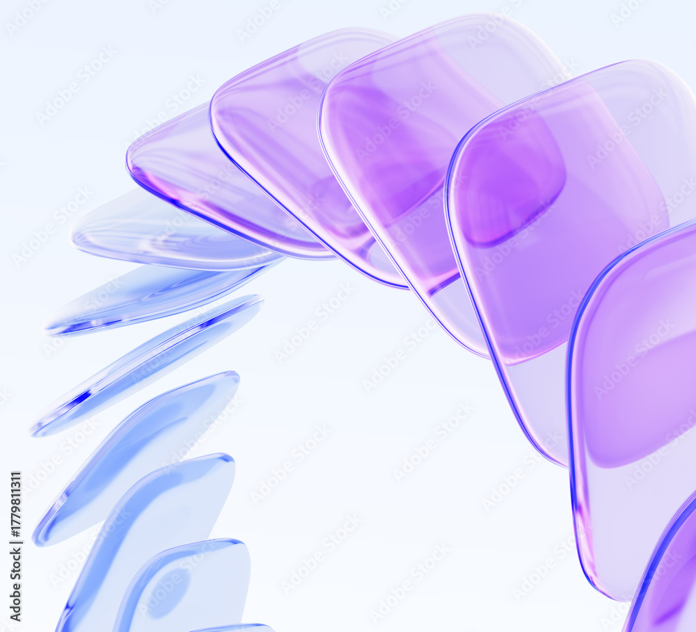 Glass square shapes dynamic 3d background. Holographic transparent block row with purple blue gradient, speed effect. Abstract geometric bg with crystal light hologram curve wave. 3D illustration #1779811311