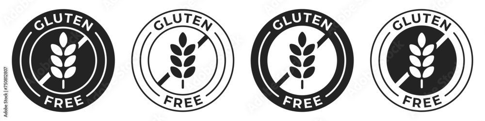Gluten free label. Gluten free icon vector illustration, logo, sign, symbol or emblem for product packaging isolated. No grain or wheat certified food badge. #750812807
