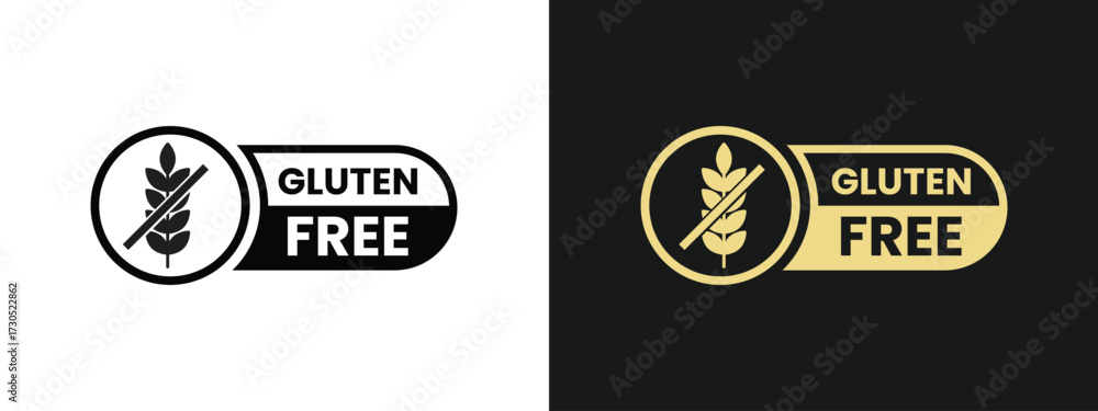 Gluten free label or Gluten free sign vector isolated in flat style. Best Lactose free label vector for product packaging design element. Simple Gluten free sign for packaging design. #1730522862